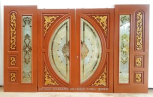 ประตูบานเลื่อนไม้สักกระจกนิรภัย BBB65