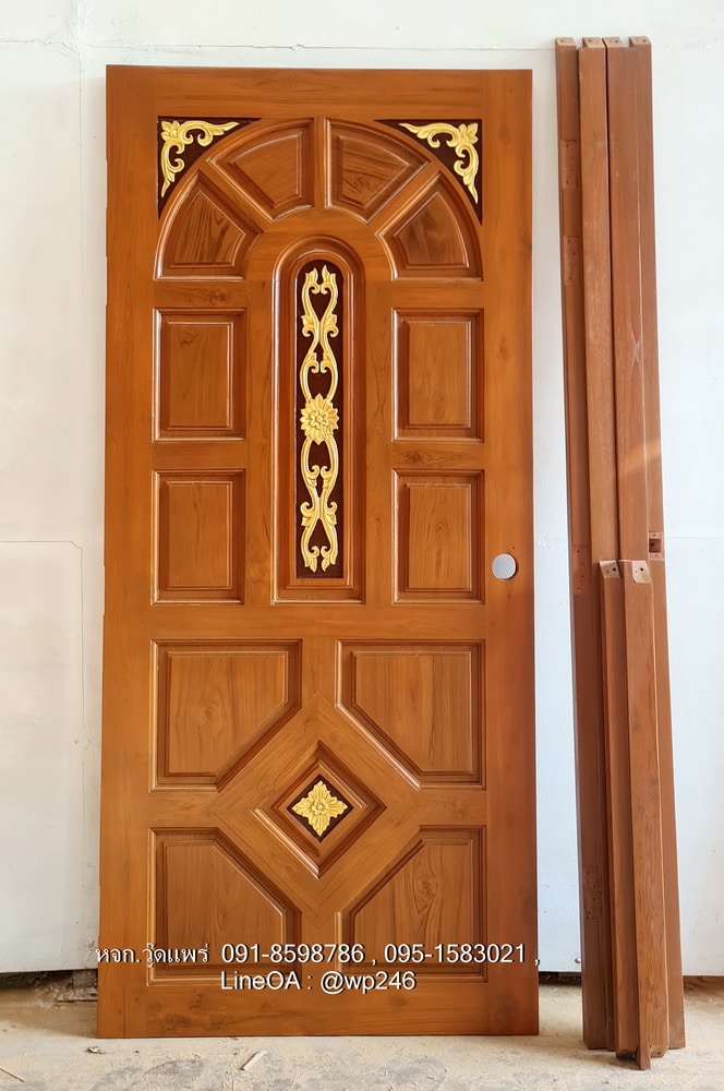 ประตูไม้สักบานเดี่ยว B110 | วู้ดแพร่ งานไม้สักแท้ แข็งแรง ทนทาน มีให้เลือกทั้งไม้สักอบแห้ง ไม้สักเก่า รับสั่งผลิตตามแบบ