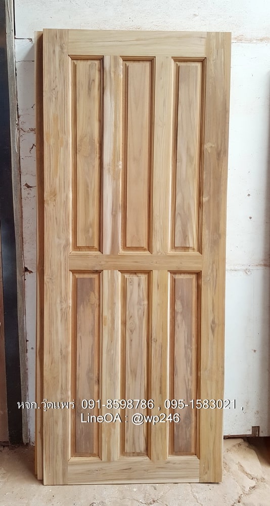 ประตูไม้สักบานเดี่ยว B34 | วู้ดแพร่ งานไม้สักแท้ แข็งแรง ทนทาน มีให้เลือกทั้งไม้สักอบแห้ง ไม้สักเก่า รับสั่งผลิตตามแบบ