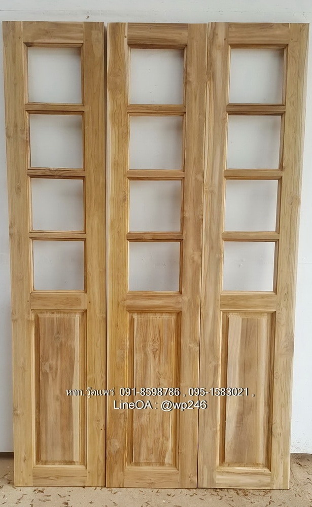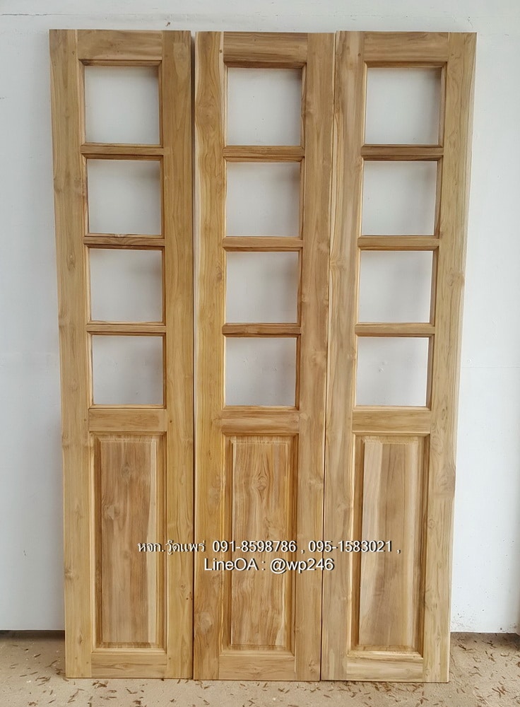 ประตูไม้สักบานเฟี้ยม A16 | วู้ดแพร่ งานไม้สักแท้ แข็งแรง ทนทาน มีให้เลือกทั้งไม้สักอบแห้ง ไม้สักเก่า รับสั่งผลิตตามแบบ