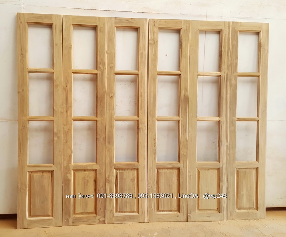 ประตูไม้สักบานเฟี้ยม A32 | วู้ดแพร่ งานไม้สักแท้ แข็งแรง ทนทาน มีให้เลือกทั้งไม้สักอบแห้ง ไม้สักเก่า รับสั่งผลิตตามแบบ