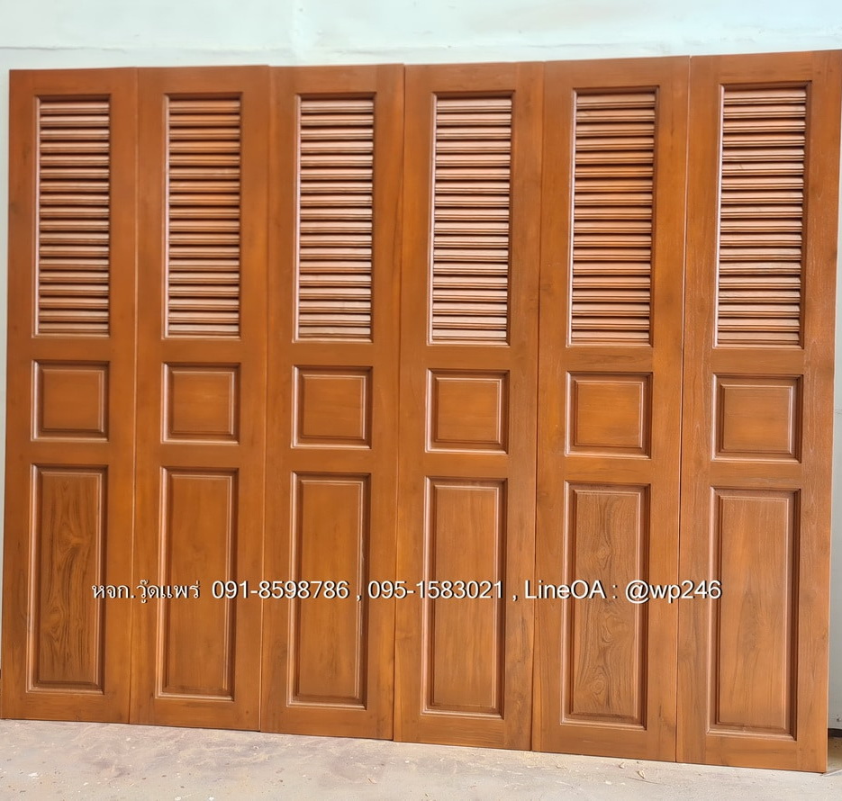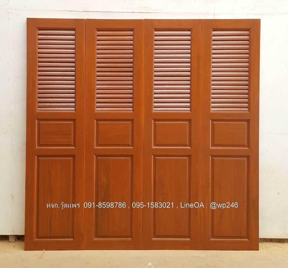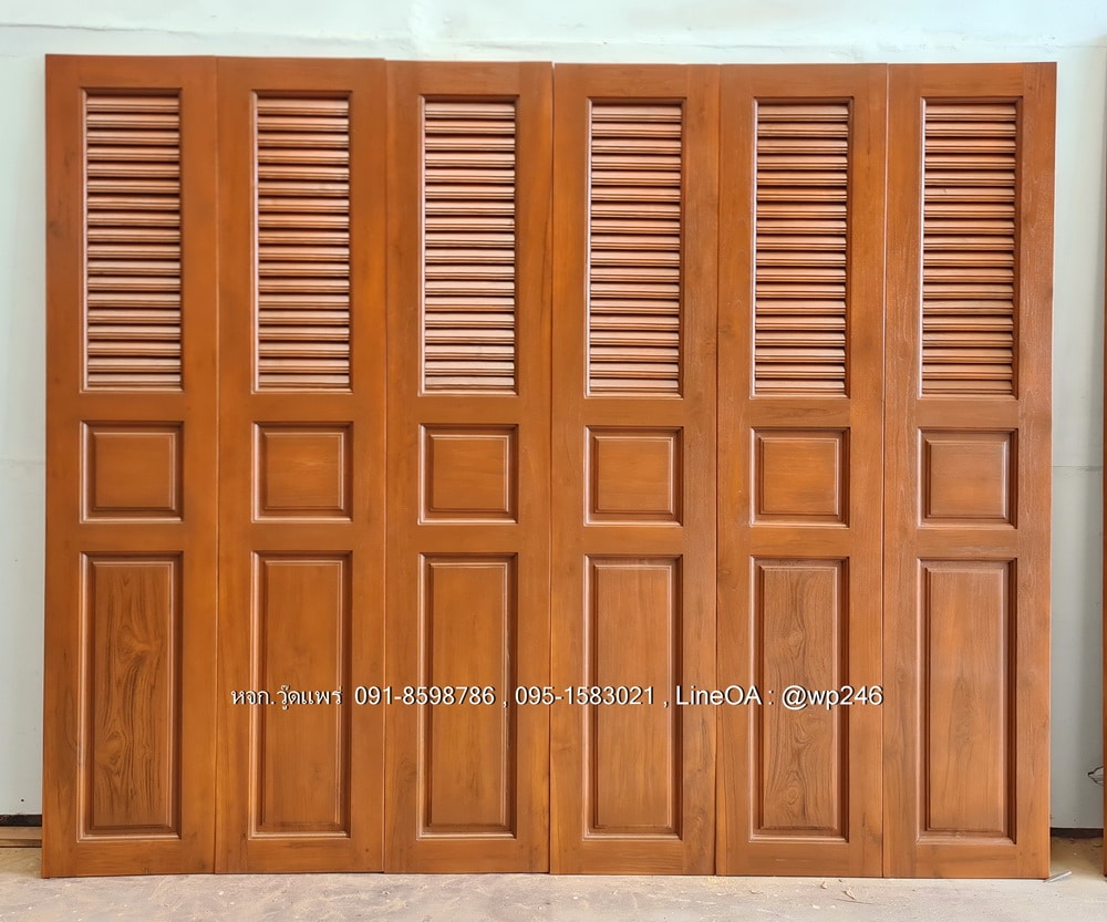 ประตูไม้สักบานเฟี้ยม A42 | วู้ดแพร่ งานไม้สักแท้ แข็งแรง ทนทาน มีให้เลือกทั้งไม้สักอบแห้ง ไม้สักเก่า รับสั่งผลิตตามแบบ