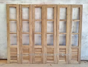 ประตูไม้สักบานเฟี้ยม A47 | วู้ดแพร่ งานไม้สักแท้ แข็งแรง ทนทาน มีให้เลือกทั้งไม้สักอบแห้ง ไม้สักเก่า รับสั่งผลิตตามแบบ