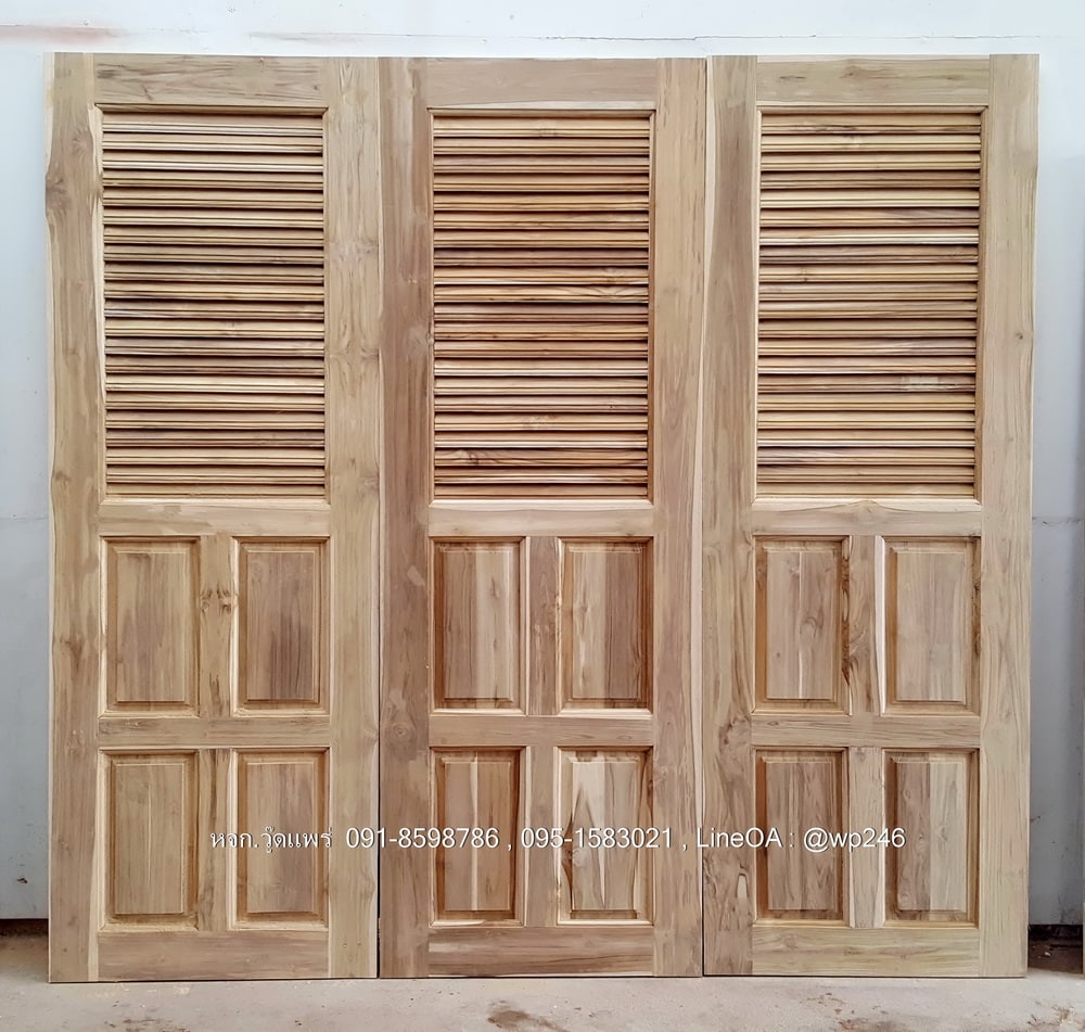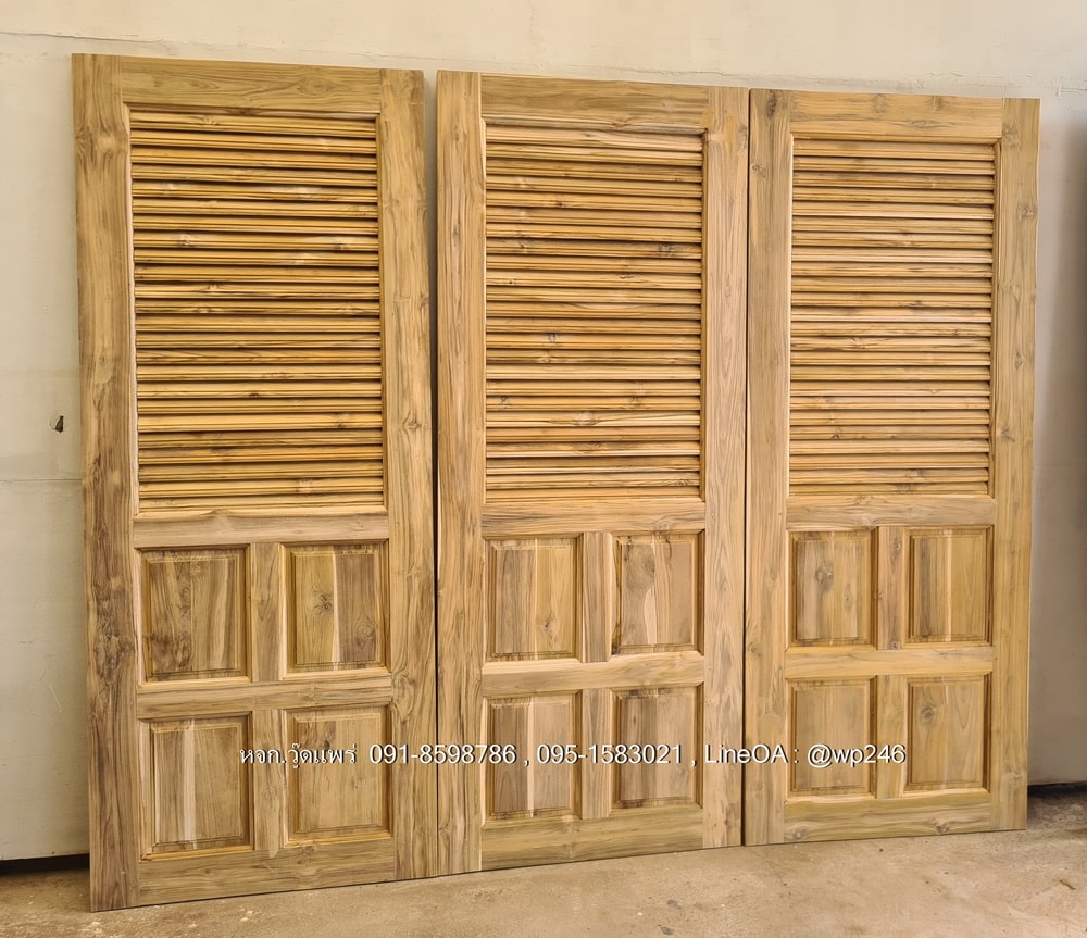 ประตูห้องน้ำไม้สัก B01 | วู้ดแพร่ งานไม้สักแท้ แข็งแรง ทนทาน มีให้เลือกทั้งไม้สักอบแห้ง ไม้สักเก่า รับสั่งผลิตตามแบบ