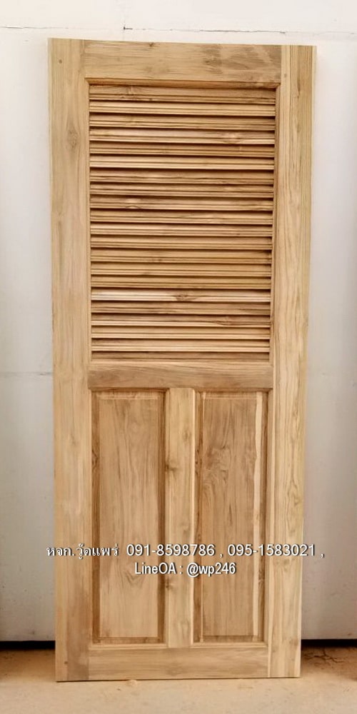 ประตูห้องน้ำไม้สัก B107 | วู้ดแพร่ งานไม้สักแท้ แข็งแรง ทนทาน มีให้เลือกทั้งไม้สักอบแห้ง ไม้สักเก่า รับสั่งผลิตตามแบบ
