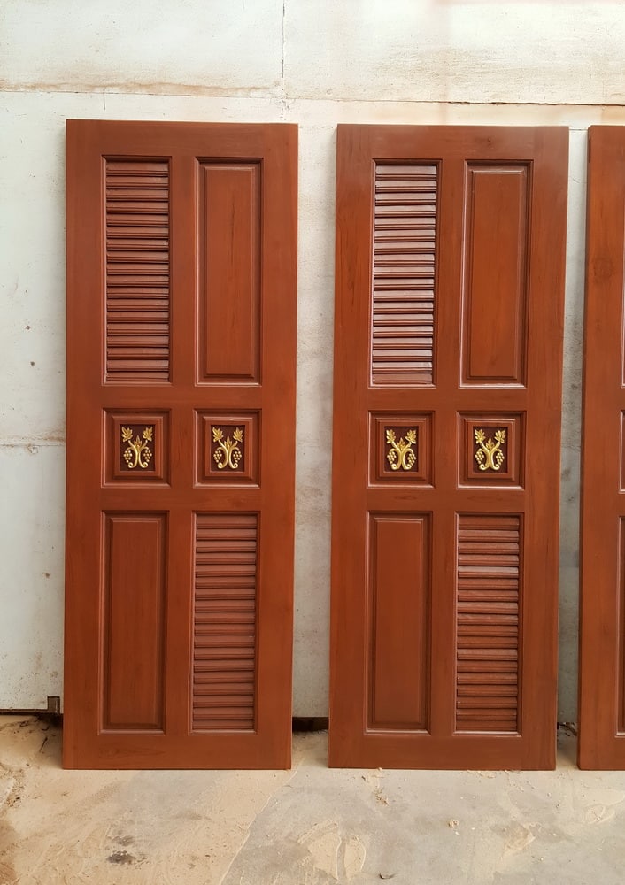 ประตูห้องน้ำไม้สัก B158 | วู้ดแพร่ งานไม้สักแท้ แข็งแรง ทนทาน มีให้เลือกทั้งไม้สักอบแห้ง ไม้สักเก่า รับสั่งผลิตตามแบบ