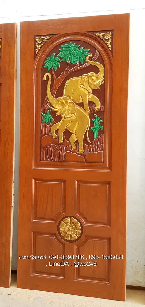 ประตูไม้สักบานเดี่ยว B320 | วู้ดแพร่ งานไม้สักแท้ แข็งแรง ทนทาน มีให้เลือกทั้งไม้สักอบแห้ง ไม้สักเก่า รับสั่งผลิตตามแบบ