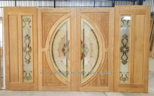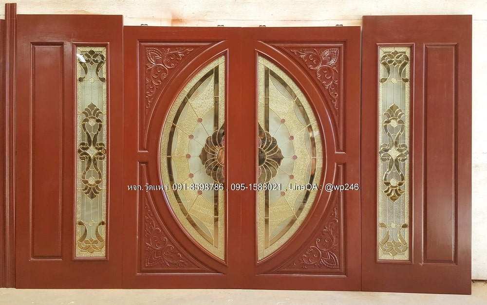 ประตูบานเลื่อนไม้สักกระจกนิรภัย