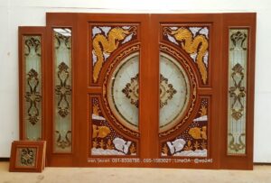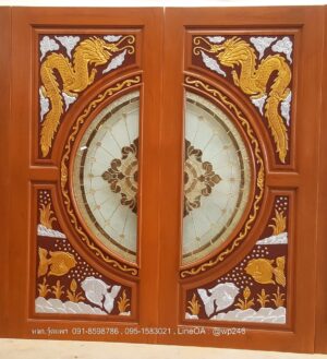 ประตูไม้สักกระจกนิรภัย