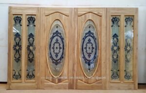 ประตูไม้สักกระจกนิรภัย