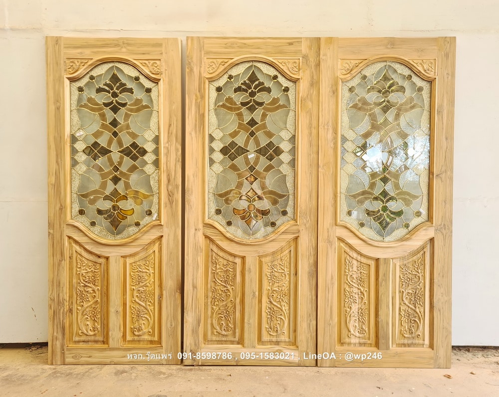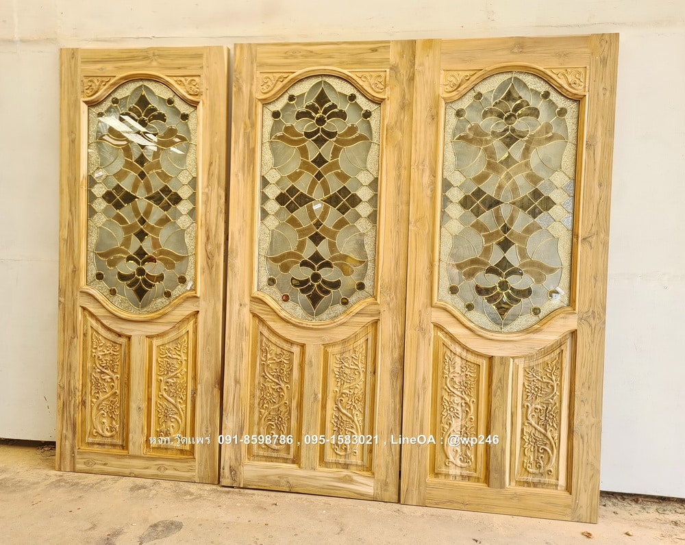 ประตูไม้สักกระจกนิรภัย BBB240 มีให้เลือกทั้งไม้สักอบแห้ง ไม้สักเก่า รับสั่งผลิตตามแบบ ติดต่อโทร 091-8598786 , 095-1583021 Line ID : @wp246 หจก.วู๊ดแพร่
