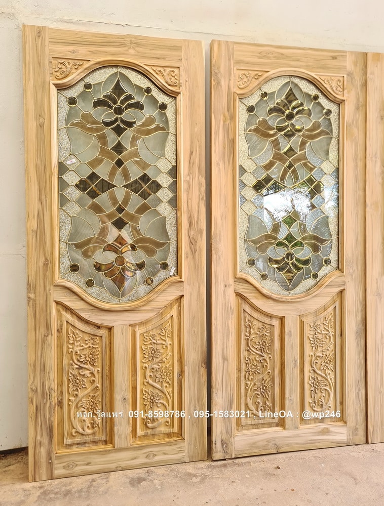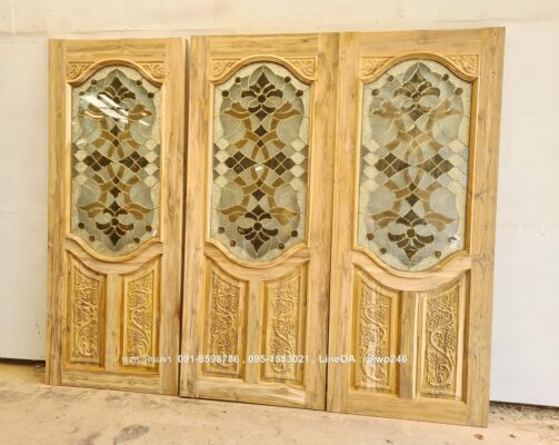 ประตูไม้สักกระจกนิรภัย