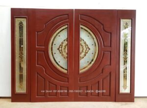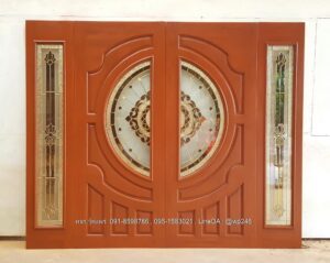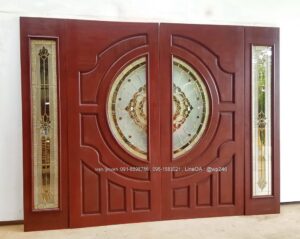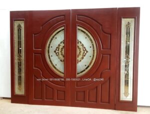 ประตูไม้สักกระจกนิรภัย