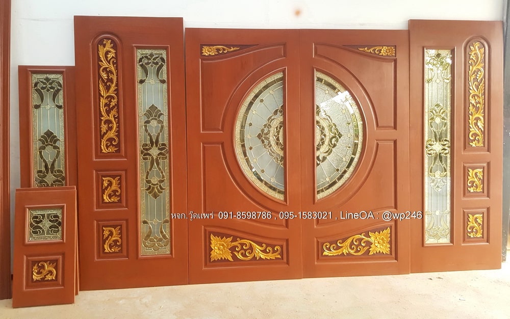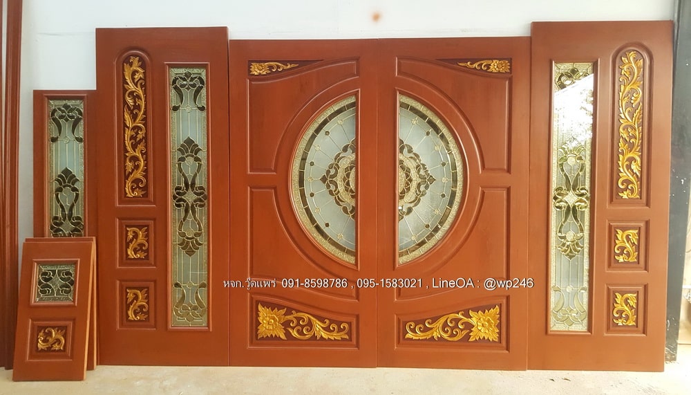 ประตูบานเลื่อนไม้สักกระจกนิรภัย